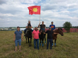 Россиядагы кыргыз жигиттер Орус дүйнөсү майрамында көк бөрү оюнун көрсөтүштү
