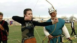 Жумгалдык бийчи Б.Акматова бийлеп жатып жаа атат