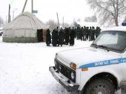 Кара-Кечеде каза болгон А.Мамбеталиевдин жакындары Жумгал РИИБнин алдында боз тигип жатышат