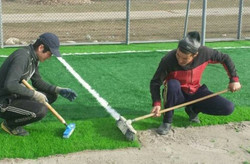 Жумгалдын Кызыл-Жылдыз айылында 2,4 млн сомго кичи футбол талаасы курулууда
