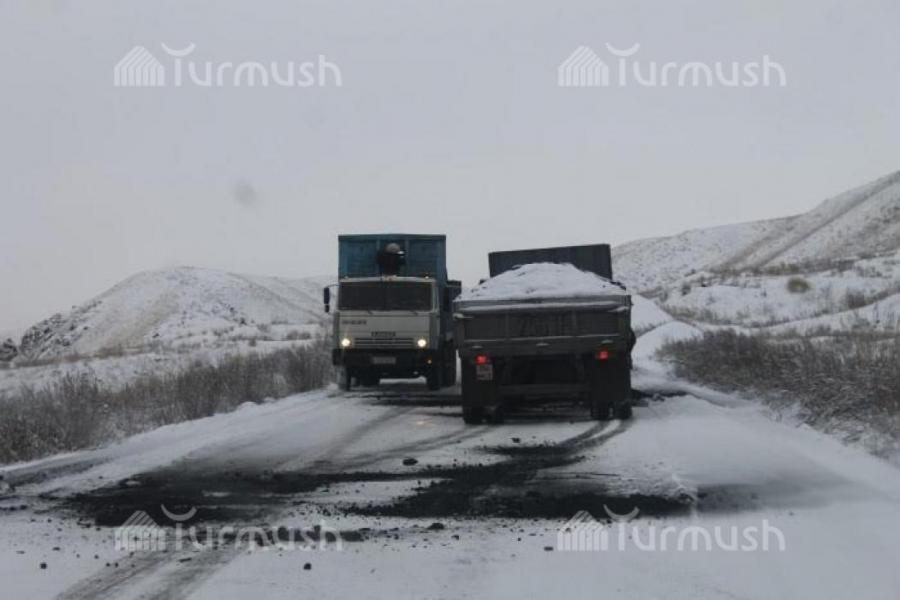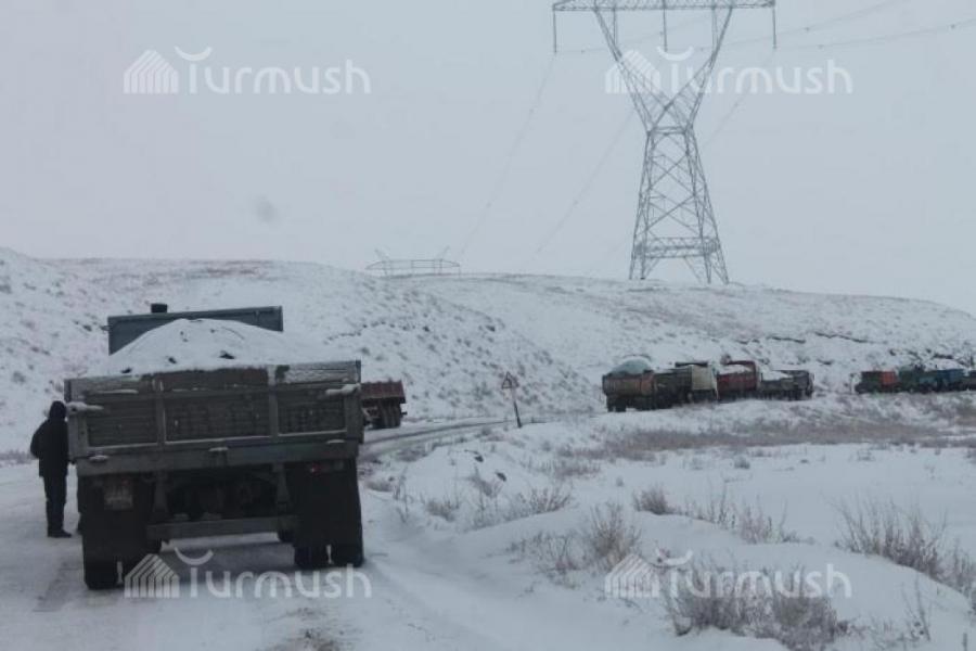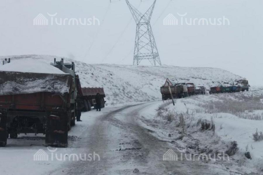 Фото — Караваны машин с углем на перевале Кызарт