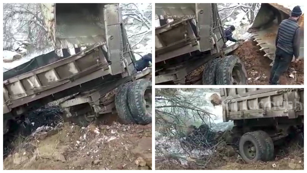 В Жумгале грузовик слетел с дороги. Видео