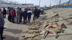 Охота на волков: Рекордсмены выложили добычу у здания айыл окмоту в Нарыне. Видео