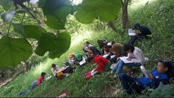 Лежа на траве: В Жумгале школьники читали книги на природе. Фото