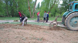 В Жумгале молодежь посеяла газонную траву на футбольном поле
